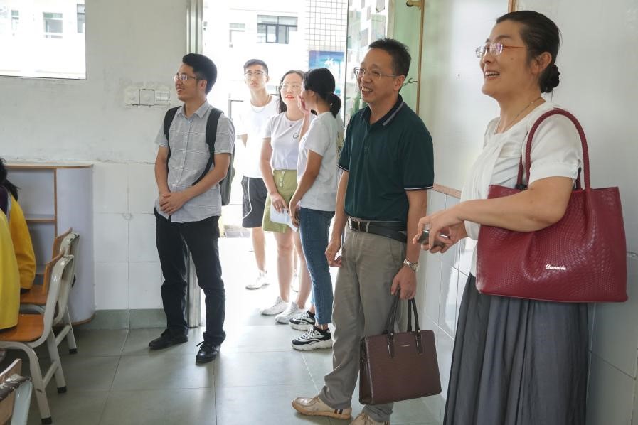 随后,谢伟光书记和余鹏翼院长带队分别走访慰问了白蕉镇成裕小学、井岸镇第二小学、横山中学、横山中心小学等学校的学生队伍。每到一处,谢书记和余院长都走进学生临时宿舍和食堂,实地察看学生实践环境,与会院学生亲切交谈,详细了解他们的生活和工作情况。