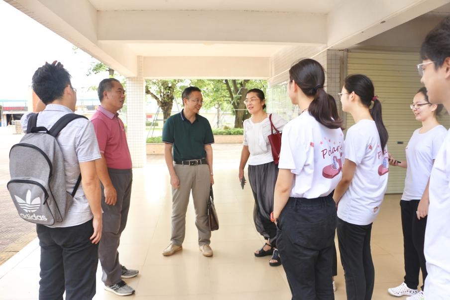 2019年7月13日,会计学院党委书记谢伟光、院长余鹏翼、党委副书记杜焕君、审计系主任黄浩、辅导员周雅颂、邓海清一行来到珠海斗门区走访慰问在此进行暑期社会实践的会院学生,并与珠海市斗门区教育局副局长汪海军、办公室主任陈栋、斗门镇中心小学副校长赵发根、黎雄超,以及各队伍代表进行会谈。