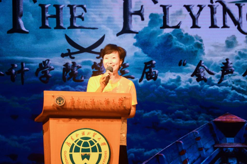 紧接着会计学院副院长蒋基路教授发表英文致辞,结合往年的情况,她充分肯定了学生们的英语水平,也非常惊叹学生的创作水平和表演能力,并希望同学们能寓学于乐,在学校这个小舞台,实现自己的大梦想。