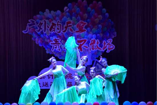 在经过振奋人心的开场倒数之后,Circle舞队首先为大家带来激情四射的舞蹈表演《Papapa》,音乐节奏动感十足,舞者们的舞步灵活多变,引场下观众连连欢呼鼓掌;紧接着的是正中珠江会计师事务所的嘉宾带来的诗歌朗诵节目《一路征程再铸辉煌》,慷慨激昂的朗诵声中,深情款款地抒发了作为审计人的心声;民舞队的舞蹈节目《小幸运》的开场创意十足,给现场观众带来了惊喜。舞台侧边的银幕上播放一段民舞队成员拍摄的《告白气球》MV,紧接着一名舞蹈演员手持气球,从观众席后方翩翩起舞,走向舞台。其他“潜伏”在观众席中的舞蹈演员也伴随着清新悦耳的歌曲舞动身姿,一起缓缓上台。正中珠江事务所的嘉宾带来的另一个节目则是新疆舞,经典的歌曲,充满异域风情的服饰,再搭配灵动活泼的舞蹈,明快炫丽;毕业生组队带来歌曲串烧《后来,一个威风的少年留在了我的身边》,歌声深情悦耳,扣人心弦;而模特队带来的走秀节目《Plumage》再次将现场的激情点燃,身着时尚服装的模特在台上台下走秀,展现着迷人的魅力。