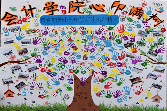 4月24日中午,许多同学被校道边一面五彩的手印墙吸引了目光。原来是会计学院学生会生活部和勤俭部联合举办的“筑梦广外,铭心会院”系列活动之“心印满树”手印墙活动,勾起大家对母校的无限情思。