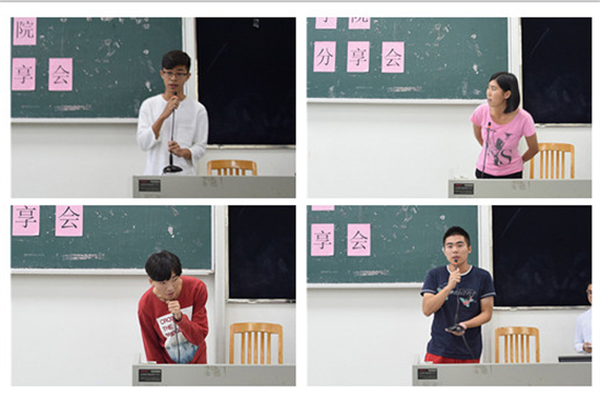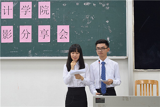 活动一开始,主持人向观众简要介绍了分享会的主题、目的及具体流程,并介绍出席的各位嘉宾。接着就是分享会的重头戏——各班微电影展示欣赏环节。两个年级都分别有九个班级参与本次分享会的微电影评比。2015级各班选材生活,围绕“公益梦,乐服务”、“国学梦,青春行”、“强国梦,争创新”、“中国梦,勇担当”等多个主题,体现班级特色。尤其是审计1502班的《舞动青春》,凭借着演员出色的演出以及与背景音乐的完美配合,赢得台下一片叫好。ACCA1501班的《飞书奇缘》脑洞大开,新颖有趣的穿越元素再次把分享会观众的热情点燃。虽然2016届的大多数班级都是第一次接触微电影的拍摄和制作,但他们的作品也都可圈可点。会计工管1601班以清洁工阿姨的工作着眼,鼓励大家从小事做起,勇担校园小主人的一份责任;会计工管1602班巧用“偷车”的误会鼓励大家加入志愿服务行列;会计工管1603从支教角度启发我们思考梦想和生活的方向;会计工管1605班从创业上切入鼓励大家珍惜当下,用双手创造属于自己的蓝天;ACCA1601班凭借对书法,象棋,武术的体会打破对国学的刻板印象。另外,1604、1607、ACCA1602班又分别从不同的角度入手,号召大家热心公益,传递爱心。