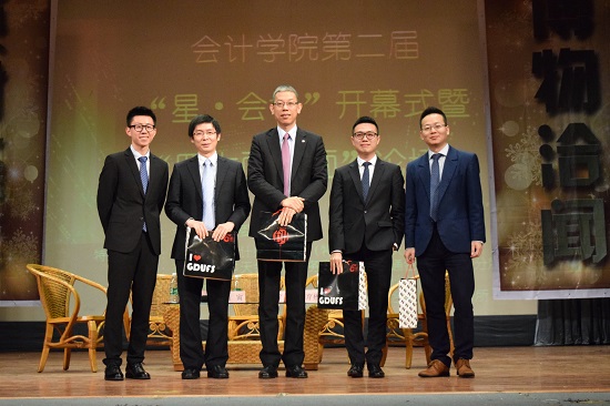2016年3月24日下午三时,广外会计学院第二届“星·会计”开幕式于B8学术报告厅正式举行。出席本次开幕式的有安永华明会计师事务所广州分所审计部合伙人黄寅先生,普华永道中天会计师事务所有限公司广州分所税务部高级经理张智营先生,上海德勤税务师事务所广东分所税务及商务咨询部总监谢少岚先生,毕马威企业咨询(中国)有限公司广州分公司咨询部总监杨育彬先生等来自四大会计师事务所的嘉宾,以及澳洲会计师公会华南办事处高级业务拓展经理邵杨帆先生,我校团委副书记刘郎老师,学生工作部部长助理、商学院辅导员刘富先老师,金融学院团委书记龙志成老师,会计学院院长刘中华教授,副院长蒋基路副教授,党委副书记黄晓梅老师,会计系主任常量老师,财务管理系主任曾昭灶老师,审计系主任黄浩老师,以及来自各学院的师生。