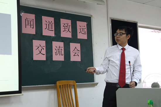 11月5日下午14:30,会计学院团委学生会学术部在F408教室成功举办了2015年度“闻道·致远”交流会。出席本次交流会的老师和嘉宾有:团委书记周雅颂老师,会计学院讲师李晓龙博士,来自会计1201的龙澜同学,会计1201的罗泳欣同学,以及代表会计1203梁嘉明同学出席的ACCA1201的廖炫钧同学。