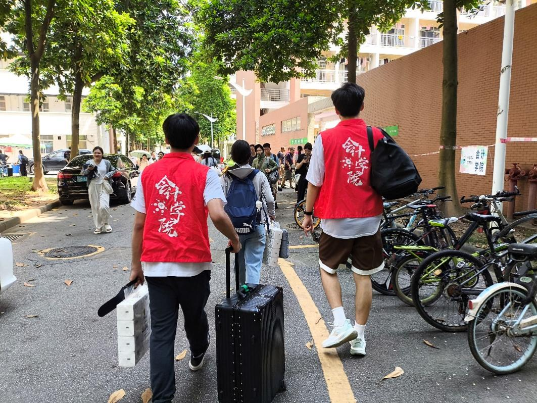 会计学院院长余鹏翼、学院党委书记黎冬、学院副书记龙文滨、洪昀、学院副书记李海琳以及学院全体辅导员老师在迎新站点、宿舍等地与新生亲切交流,寄语新生适应大学生活,共创未来,并高度赞扬了志愿者工作。
