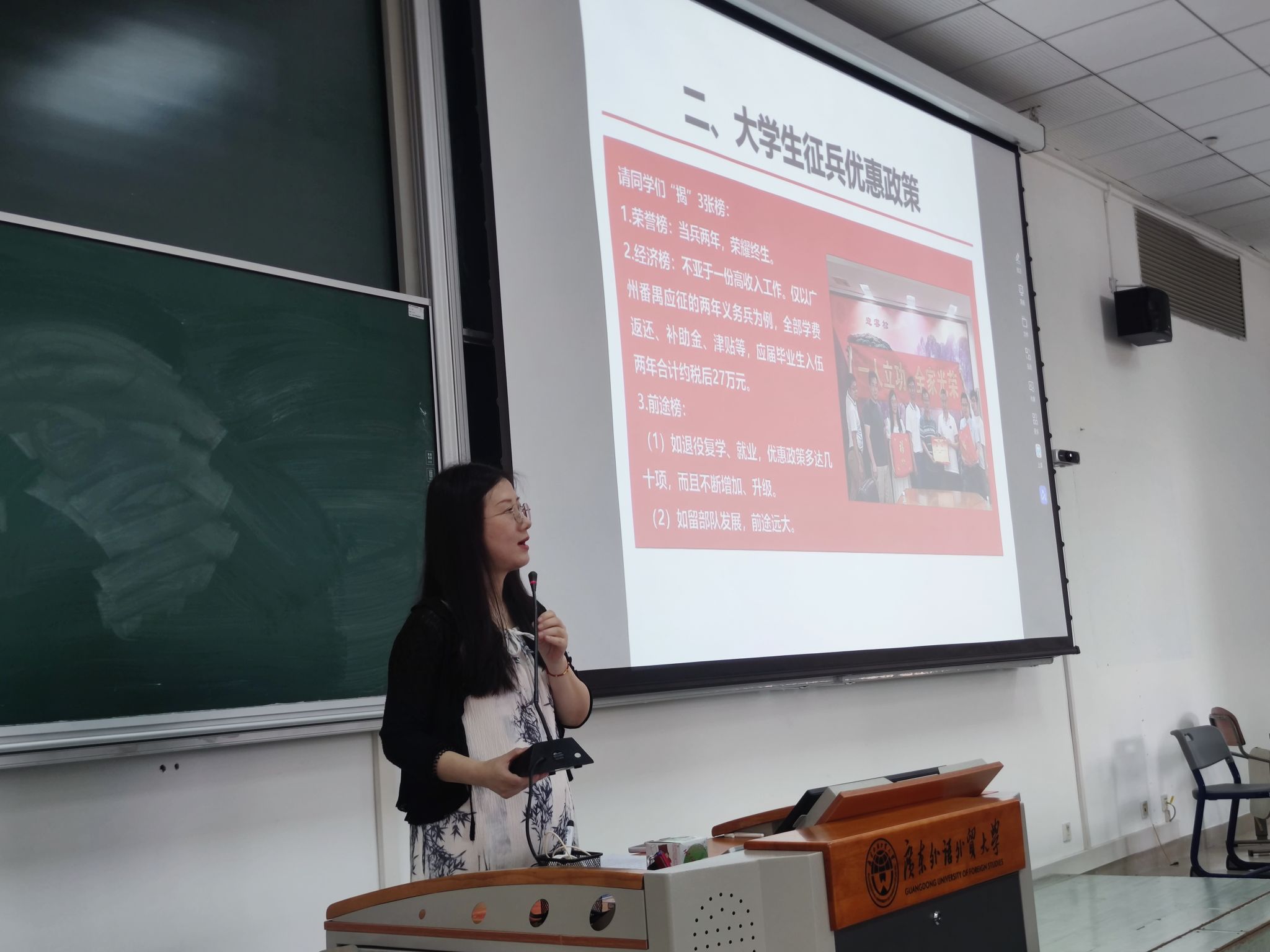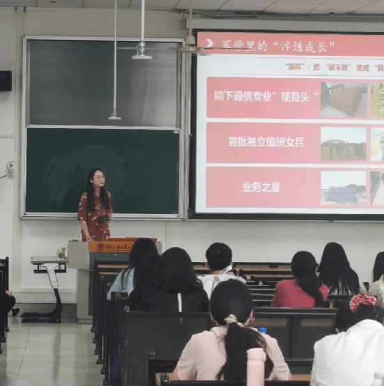 随后,退伍研究生李冬薇以亲身经历讲述军营成长的故事。她分享了自己从初入军营的迷茫到成长为优秀士兵的心路历程,并详细介绍了报名流程和注意事项。“在部队,我学会了责任与担当,这些经历成为我人生中最宝贵的财富。”她的故事引发在场学生的强烈共鸣,现场掌声不断。