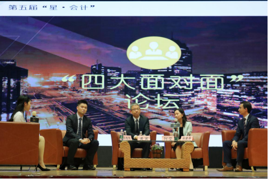 在热烈的掌声中,“四大面对面”论坛拉开帷幕。论坛上,四大会计事务所的嘉宾就粤港澳大湾区对会计人才的影响、大湾区税务政策的协调机制、全国两会提出的减税措施怎样落实、人工智能对会计行业的影响、中美贸易战等问题,与老师同学们进行了探讨,并回应了同学们对如何提升自身职业竞争力、如何过好大学生活等问题的关切。