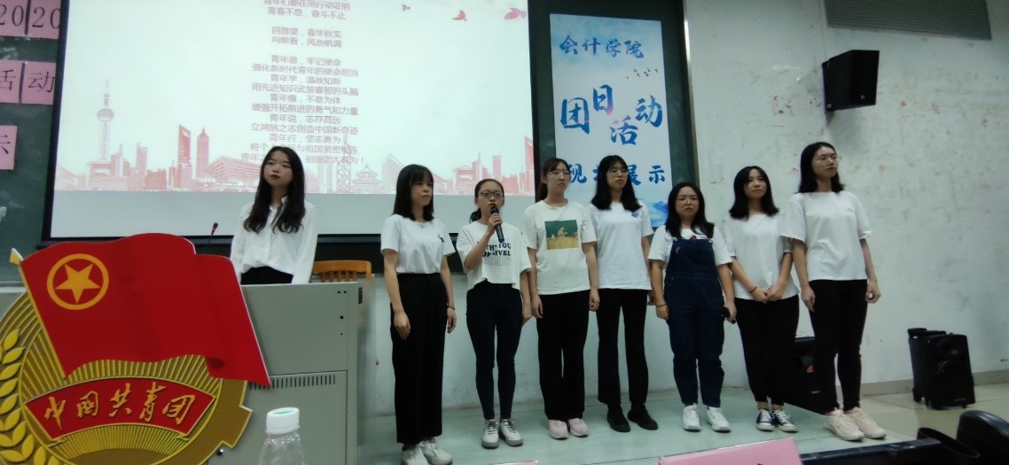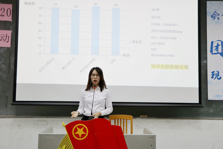 在本次展示活动中,各团支部精心准备,以视频、绘画、朗诵、情景剧等形式回顾并讲解了其团日活动的开展过程。通过展示可以看到在团日期间,同学们通过参加观影活动、举行知识竞赛、彩色包裹线下募捐、举办读书分享会、外出运动等方式学习抗疫精神、助力脱贫攻坚,同时展现出青年一代昂扬向上、奋发有为的精神风貌。杜焕君副书记对财管1902班自行组织的线上宣传募捐与线下摊宣活动表示肯定,并鼓励他们积极宣传,展示会院学子的青年担当。