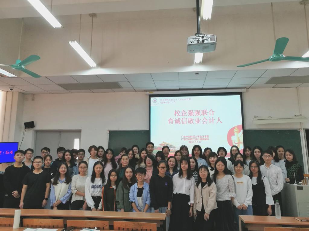 2019年12月17日下午,会计学院与正中珠江会计师事务所在南校区G106联合举办“铸魂·系扣”工程之寒假实习岗前培训会。会计学院党委副书记杜焕君老师以及正中珠江会计师事务所李臻经理、王纯经理等出席了会议。本次大会由2017级辅导员李浩然老师主持,参加实习的60名研究生和本科生参加的培训会。