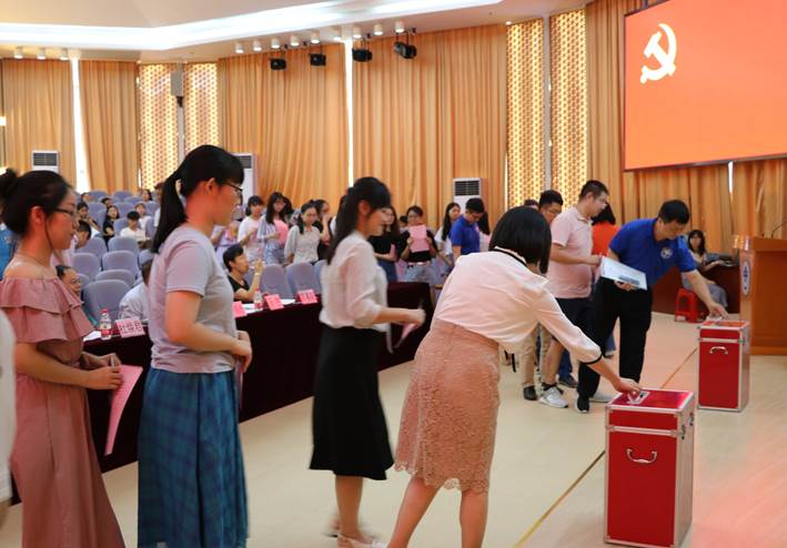 按照大会通过的选举办法,到会全体正式党员以无记名投票的方式,差额选举新一届学院党委委员。严格按照公平、公正、公开的原则,经过查验票箱、发放选票、宣读填写规则后,党员们认真填写选票、有序投票。投票结束后,监票人、计票人回收、清点、计算选票。