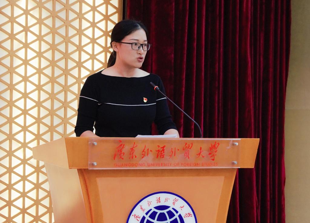 主持人余鹏翼向大会报告到会党员人数:应到正式党员107名,因事、因病请假7人,实到正式党员100名,符合换届改选规定的法定人数,宣布中共广东外语大学会计学院第二次全体党员大会开幕。
