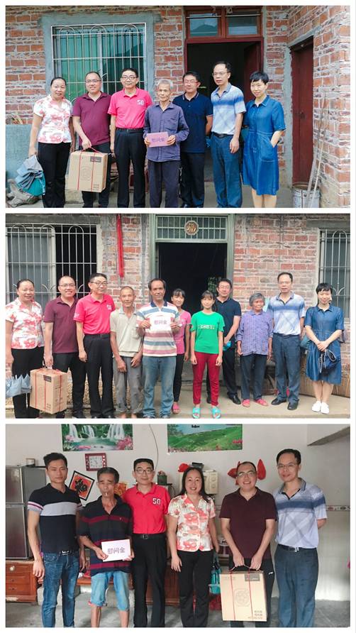 在我校驻点扶贫工作队队长、蒲芦洲村第一书记李津和驻村干部陈静等人的带领下,会计学院一行走访并慰问了方凡坪三户定点帮扶贫困户。学院给他们送去慰问金和慰问品电扇、书籍等,并悉心询问帮扶户身体健康状况、子女学习情况和农业生产情况。