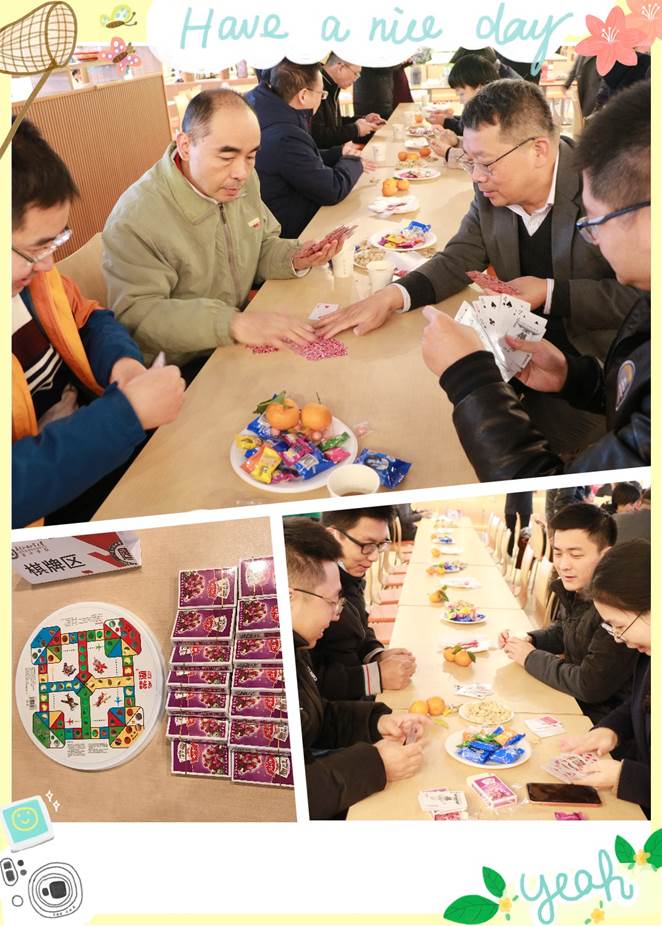 本着因地制宜、简约欢快、适度热闹的原则,院办提前布置活动场地,现场洋溢着新年的气息。活动前,教师们积极参与升级棋牌比赛,现场欢声笑语不断。大家坐在一起轻松的聊天,谈笑间忘却了诸多压力与烦恼。