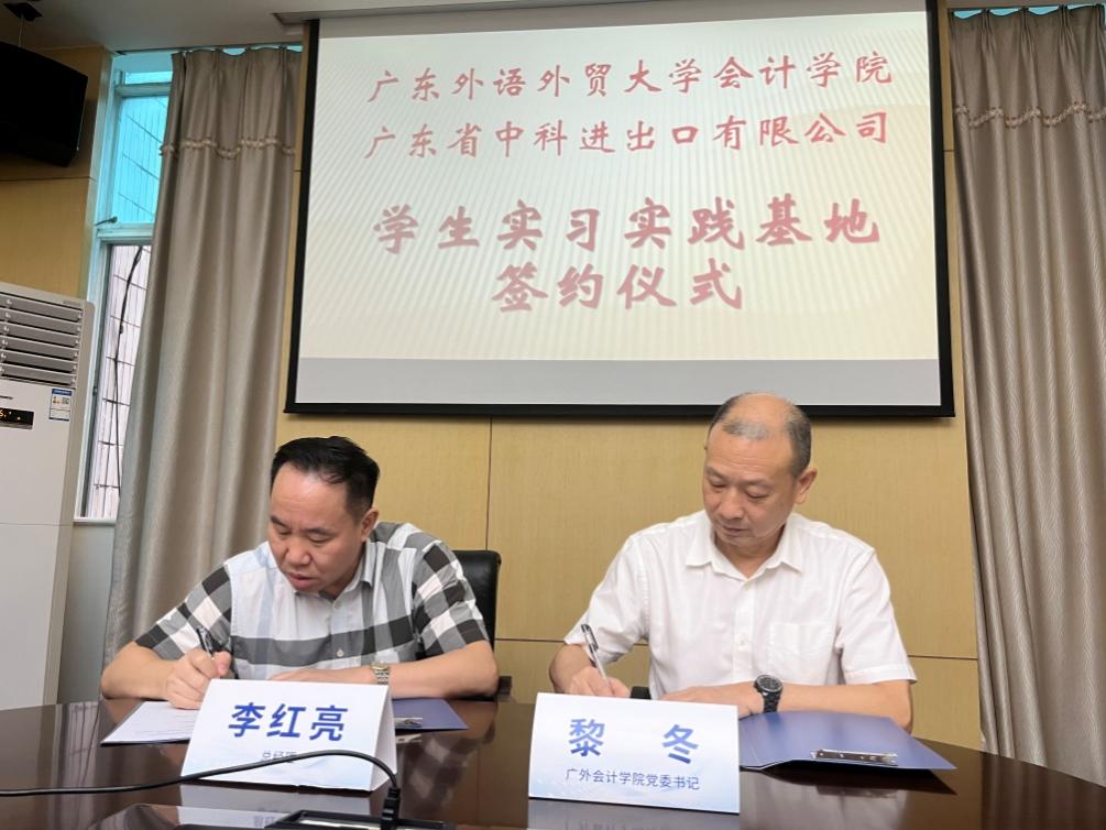 2023年9月14日,我校与广东省中科进出口有限公司签署校企框架合作协议。广东省中科进出口有限公司总经理李红亮、总会计师杨国壮、财务总监廖彩华、总经理助理沈凤鸣、人事经理刘霞及校友代表;广东外语外贸大学会计学院党委书记黎冬、党委副书记李海琳、审计系党支部副书记陈丽及辅导员、毕业生代表出席仪式。