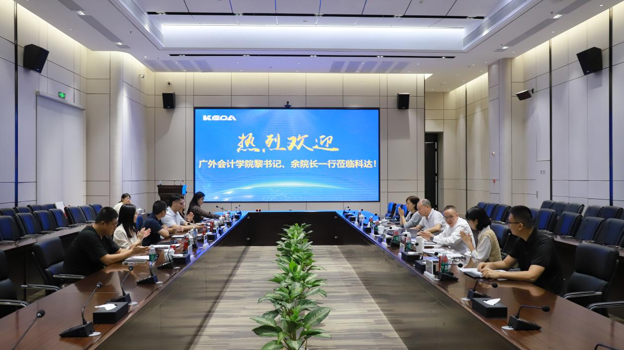 黎冬书记重点介绍了广外的办学历史、办学特色、学院学科专业优势。余鹏翼表示科达集团的“四化”发展理念与广外会院“四化”人才培养目标不谋而合,他提出两个合作方向,一是为科达制造“小语种+会计”提供人才支持,定制化培养海外人才;二是希望进一步合作推进国际化战略合作,让学生充分参与实践实习实训,提升学生就业动力。他希望签约实习基地以后,科达制造与会计学院在合作中充分发挥优势资源,共同打造学生实习实践、产教融合教学交流的崭新舞台。