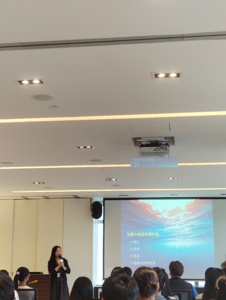接着, Crystal介绍了安永的发展状况、业务范围、企业文化及未来展望,还给同学们展示安永员工的职业发展路径以及安永的校园招聘计划,让同学们对安永有了较为清晰的认识。