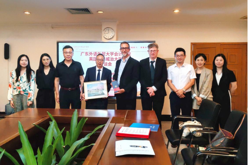 英国格林威治大学计算机与数学学院马继新教授、中国办公室项目专员沈玥,广东外语外贸大学国际交流合作部方越锋老师、会计学院王琳副教授、孙黎老师出席了此次会议。会议尾声,双方互赠纪念品并合影留念,为此次友好交流画上圆满句号。